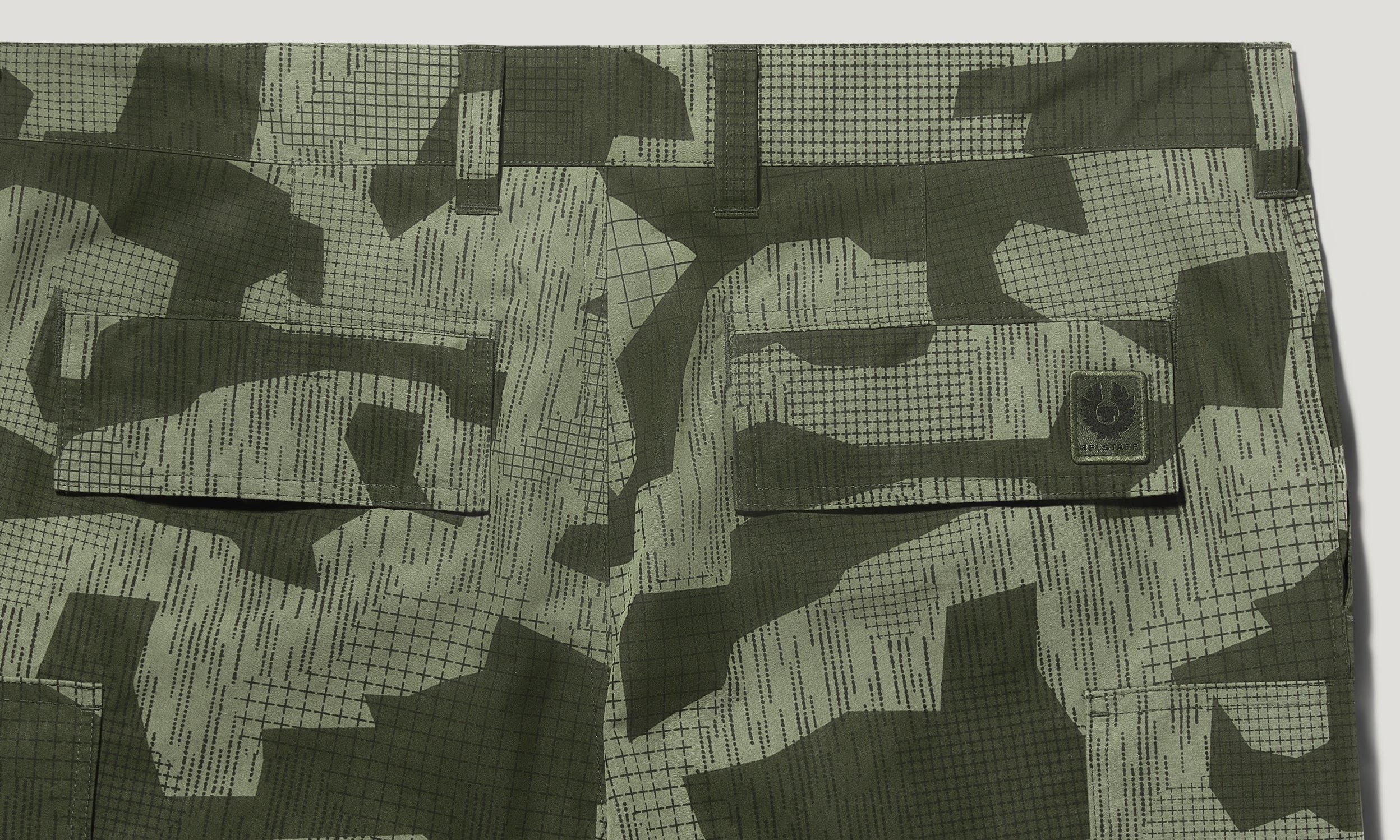 Two front pockets, side cargo pockets with snap closure, two back pockets with flap closure
