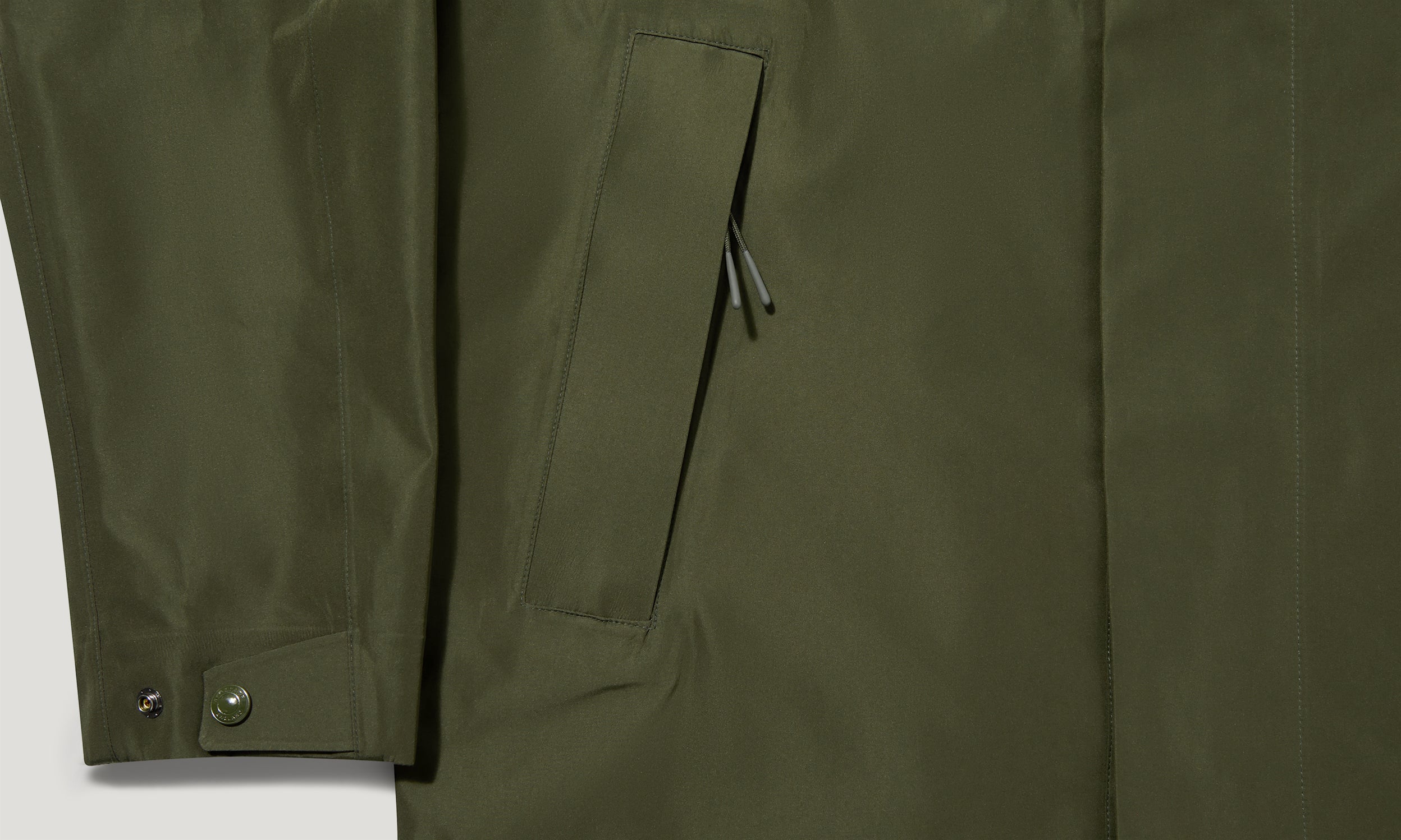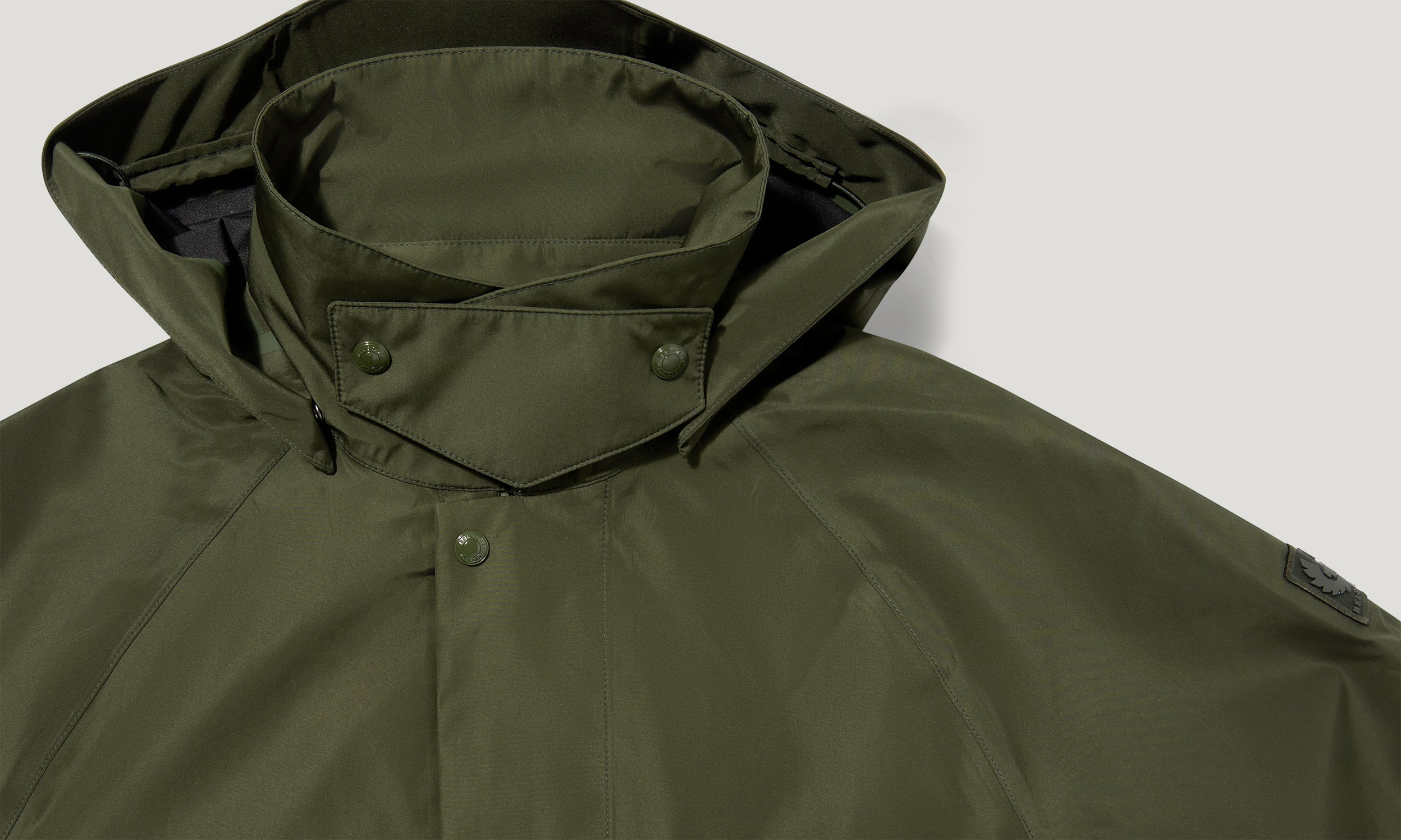 Fully waterproof TriTech Shell with a 3-layer bonded construction, a polished surface and a crisp hand-feel