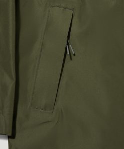 Waterproof centre front zip opening, concealed press stud placket fastening