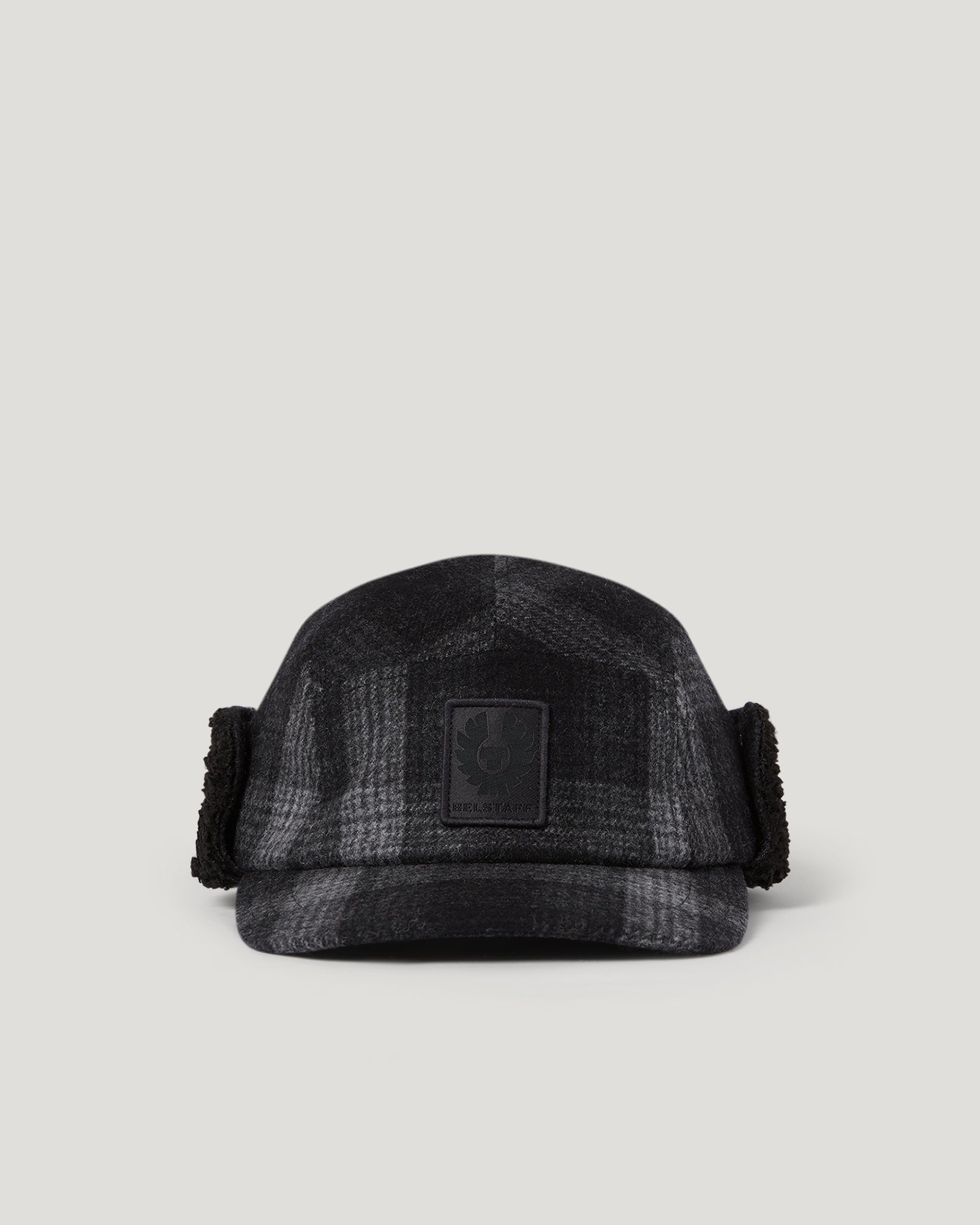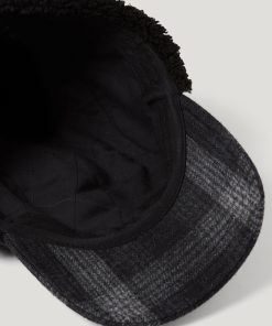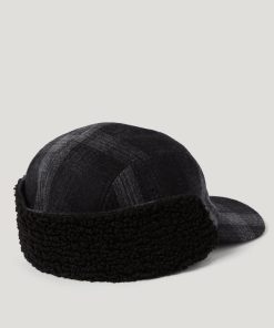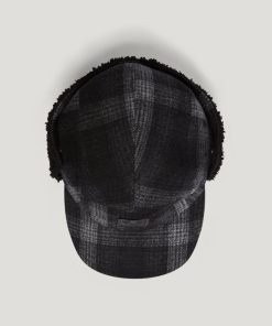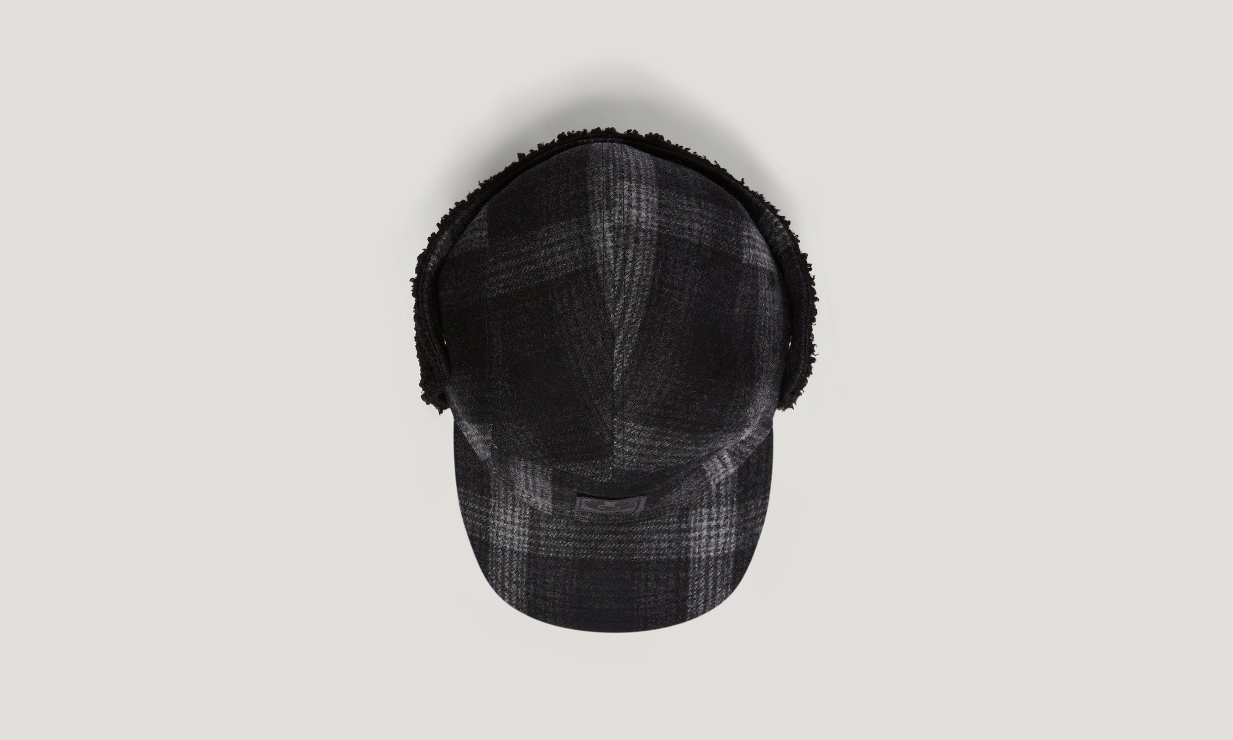 Wool blend plaid trapper hat in graphic shadow plaid