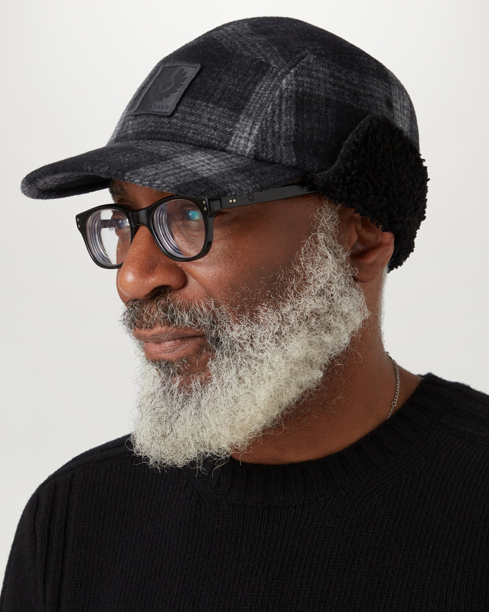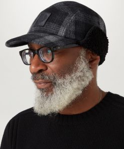 Fleece fold down ear warmer panels with press stud buttons so the brim can be folded up at the sides